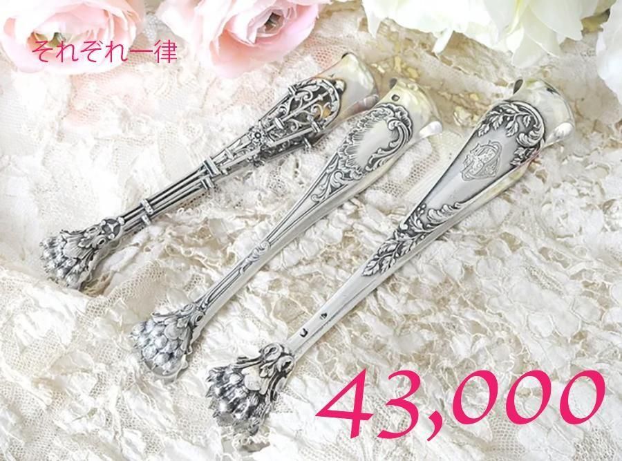 フレンチアンティークシルバー【純銀】Puiforcat シュガートング 3本(左の物に価格設定してあります。それぞれの価格は説明をご参照の上希望のお品を備考欄に記入して下さい)