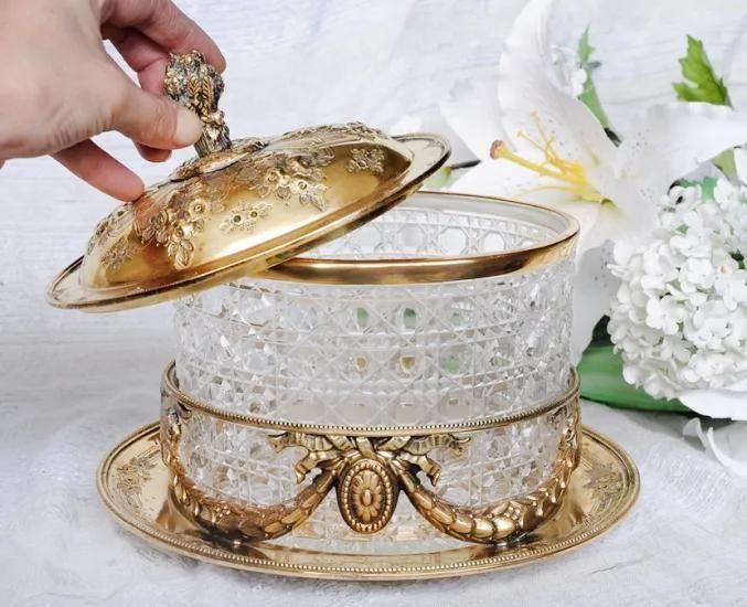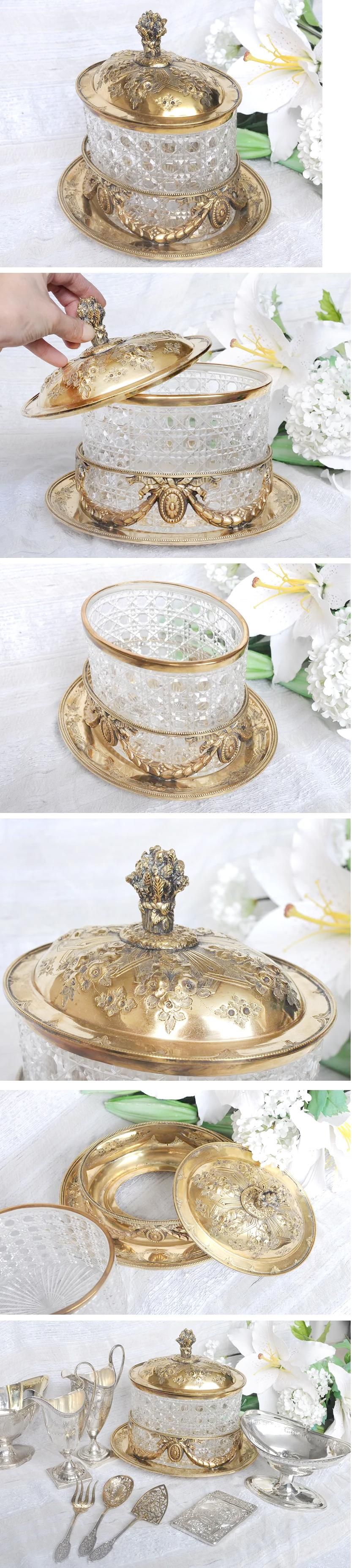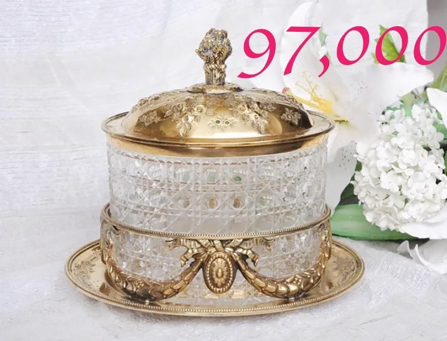 サイズ◆1868g 底部分の横幅23.5cm 高さ23cm グラスディッシュの幅16.5cm 蓋を外した時の高さ14cm 奥行き12cm