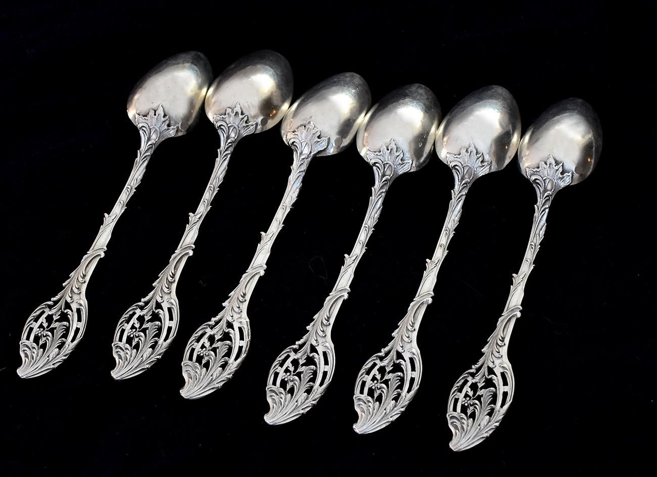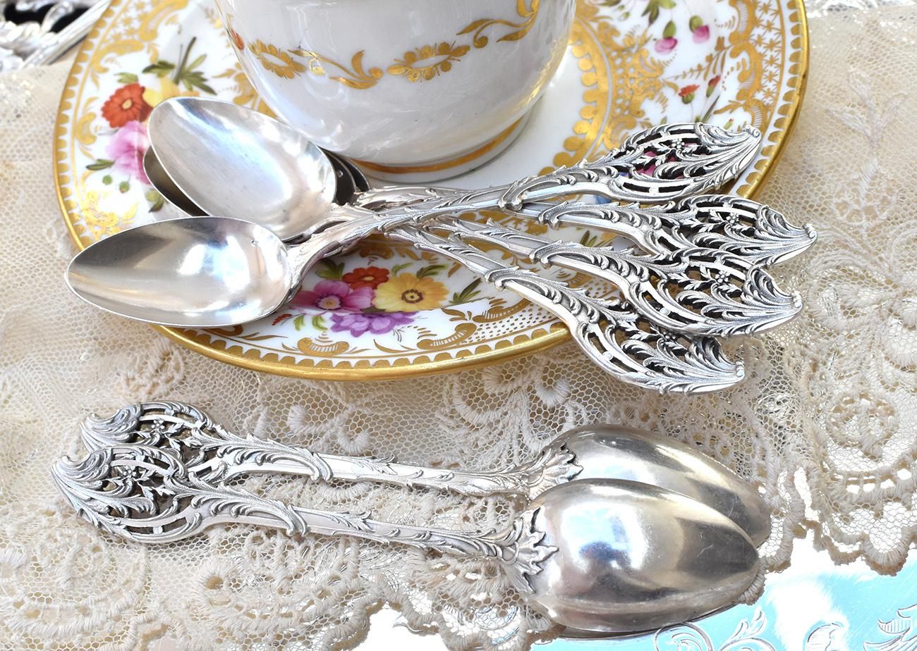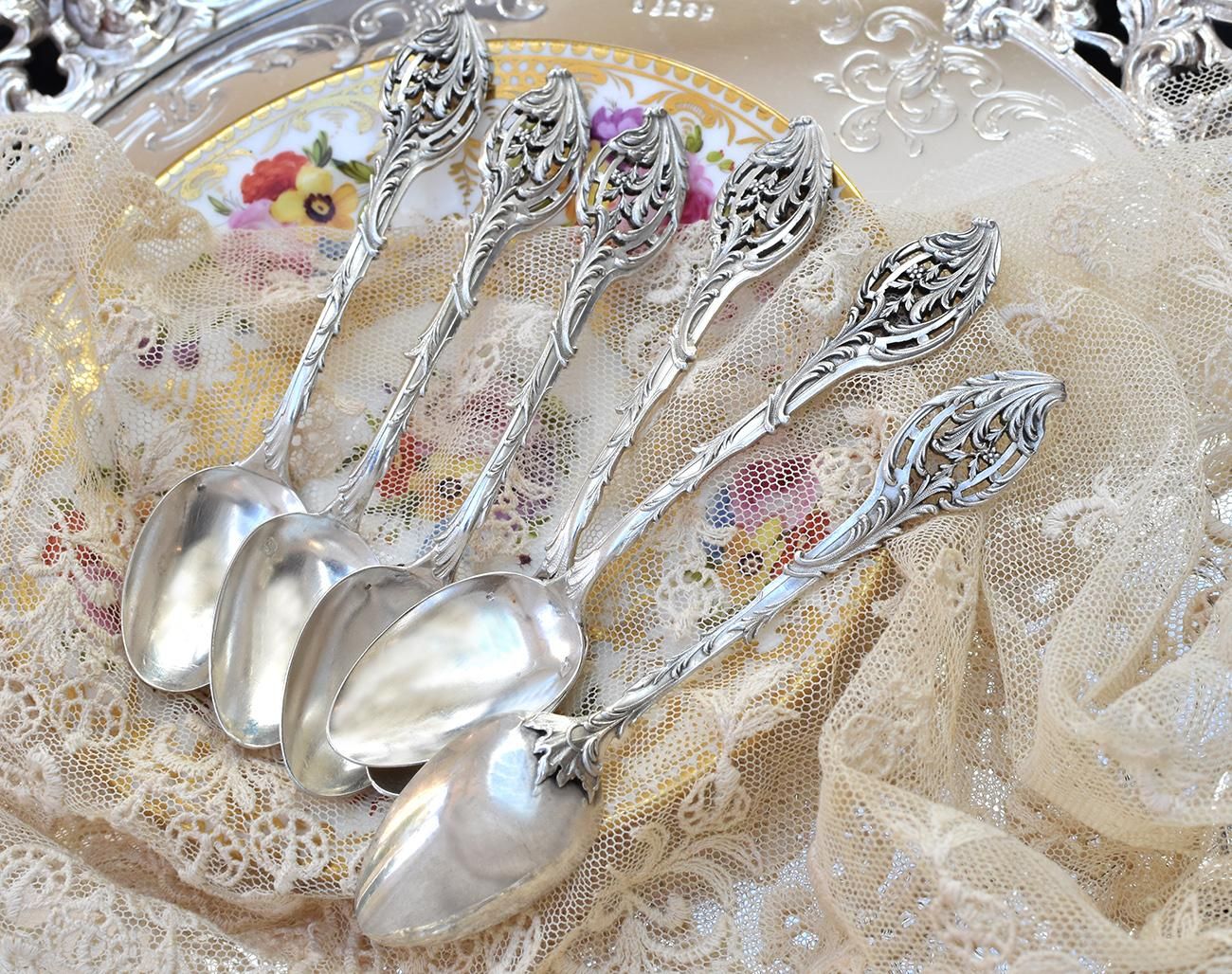 仏アンティーク銀器【銀800以上】透かしハンドルのティースプーンセット Adolph Boulenger