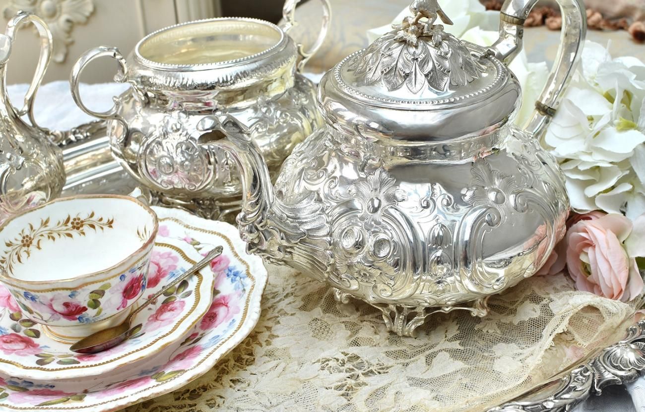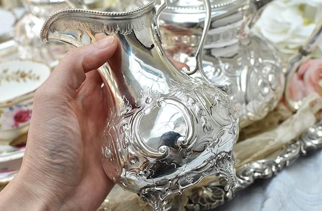 ダウントン・アビーのテーブルセッティングにも使用されているルイスタイルのティーセット、シルバープレート+マークなしという事で比較的リーズナブルな価格で入手していただけます。