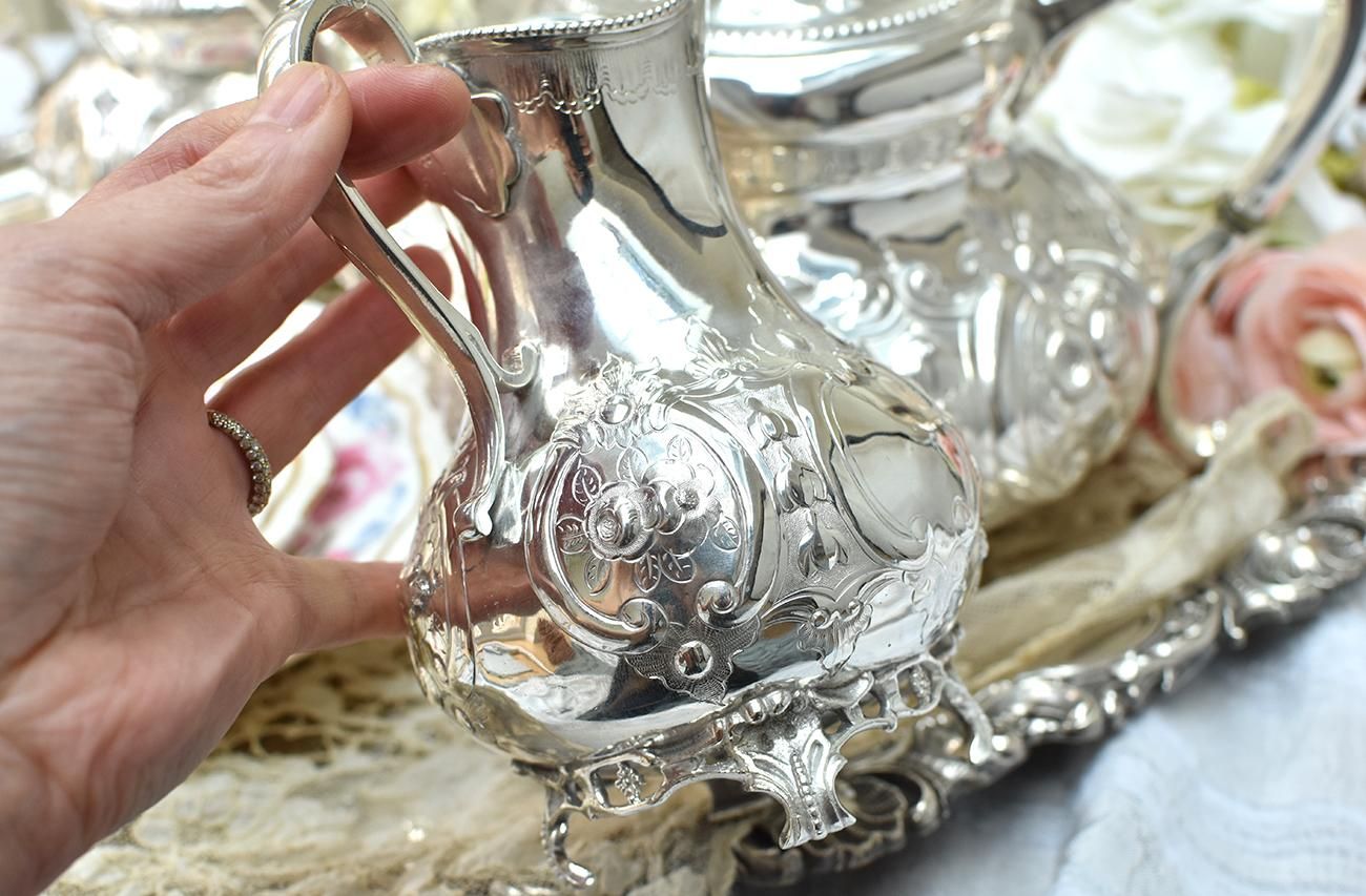 英国アンティーク銀器【シルバープレート】ルイスタイル ティーセット G&S