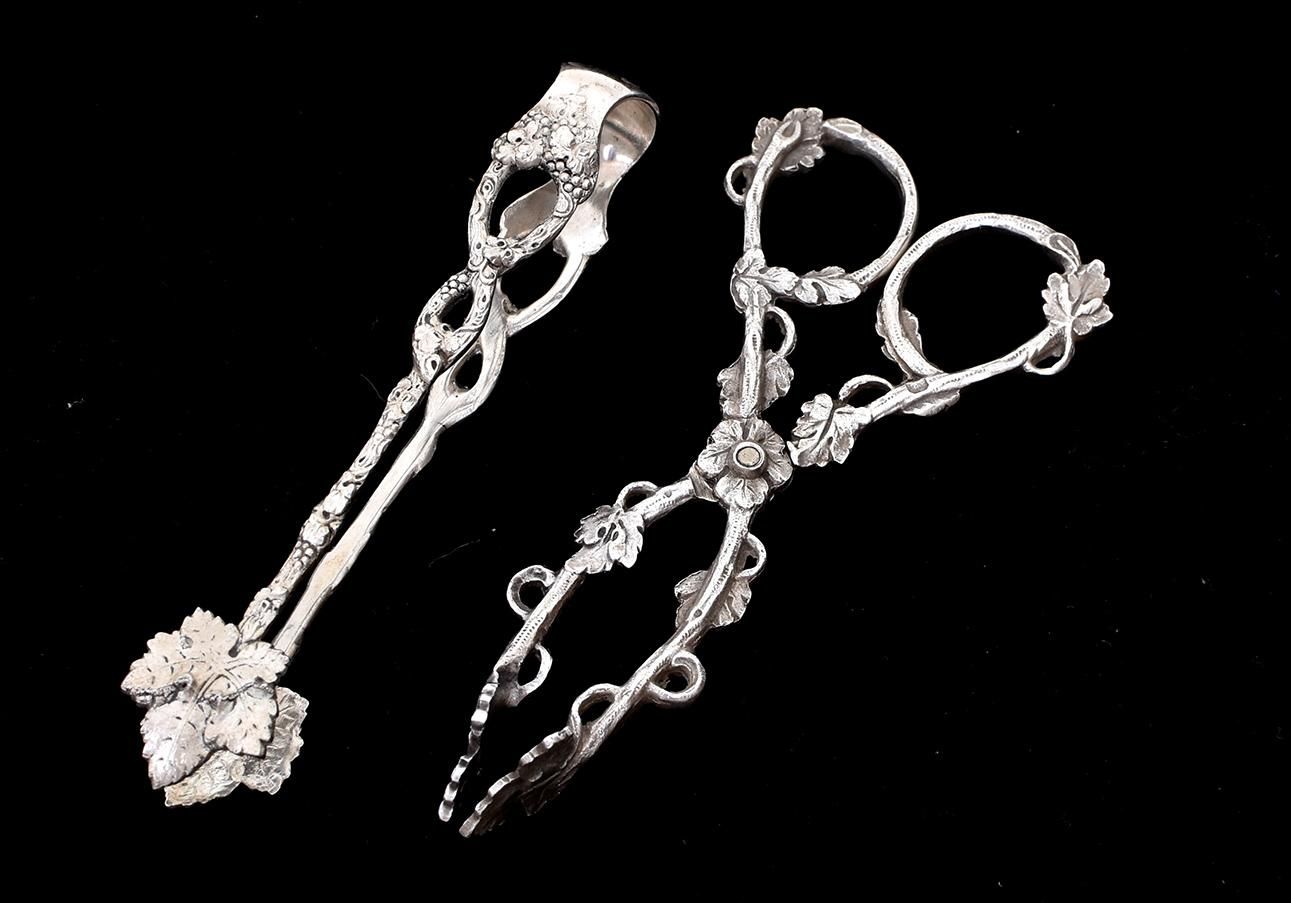 仏アンティーク銀器【銀950】ナチュラリスティック シュガーニップス&シュガートング