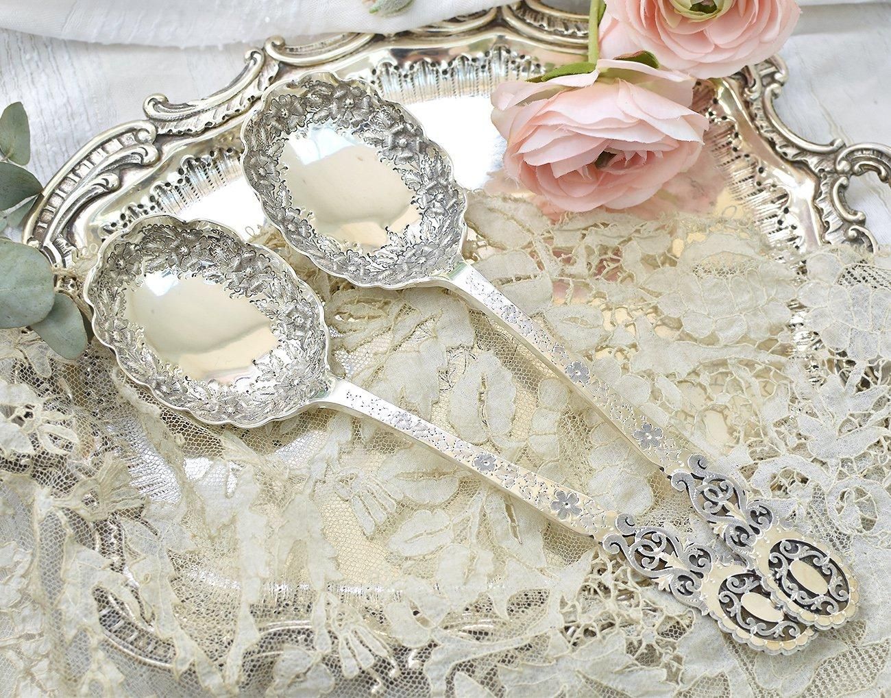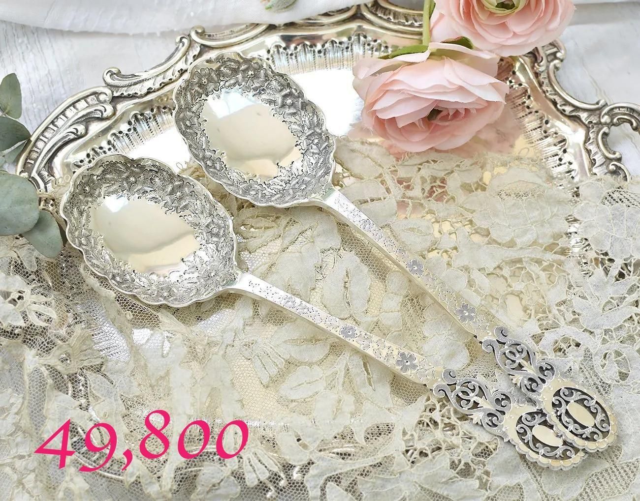 英国アンティーク銀器【純銀】1902年 サービングスプーンペア James Deakin&Sons 127g