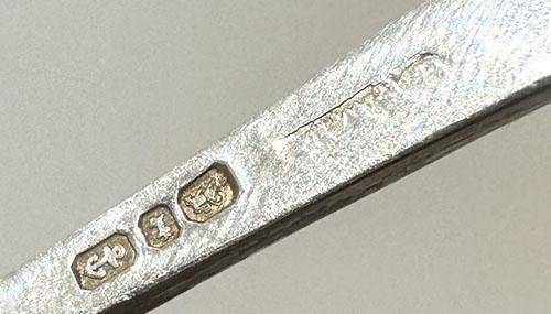メーカーズマークはホールマークの横に刻印されていますが、薄れがあり見えにくくなっています。画像でご確認下さい。