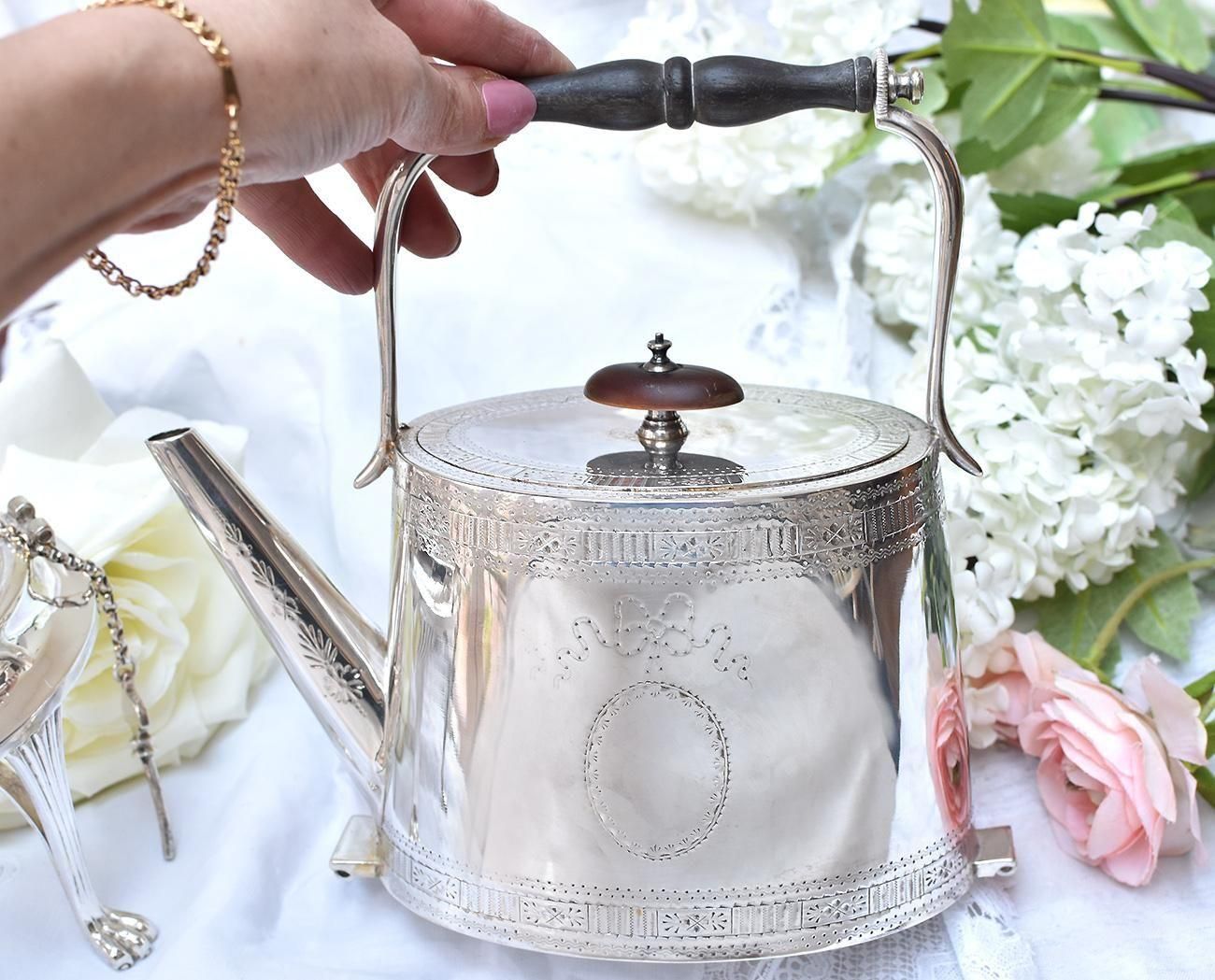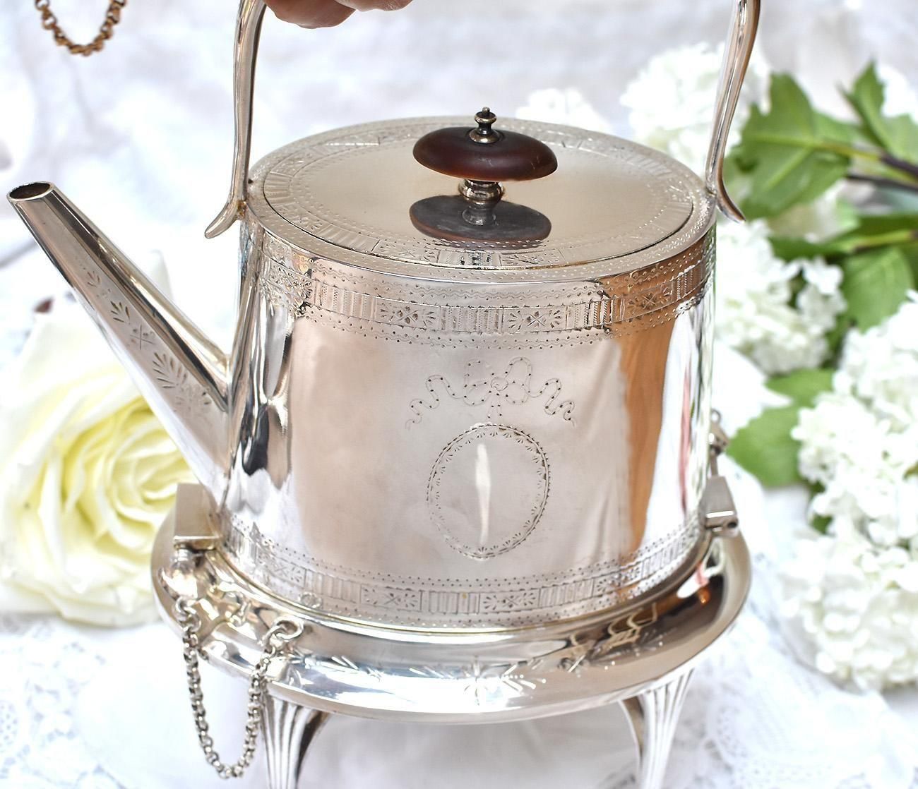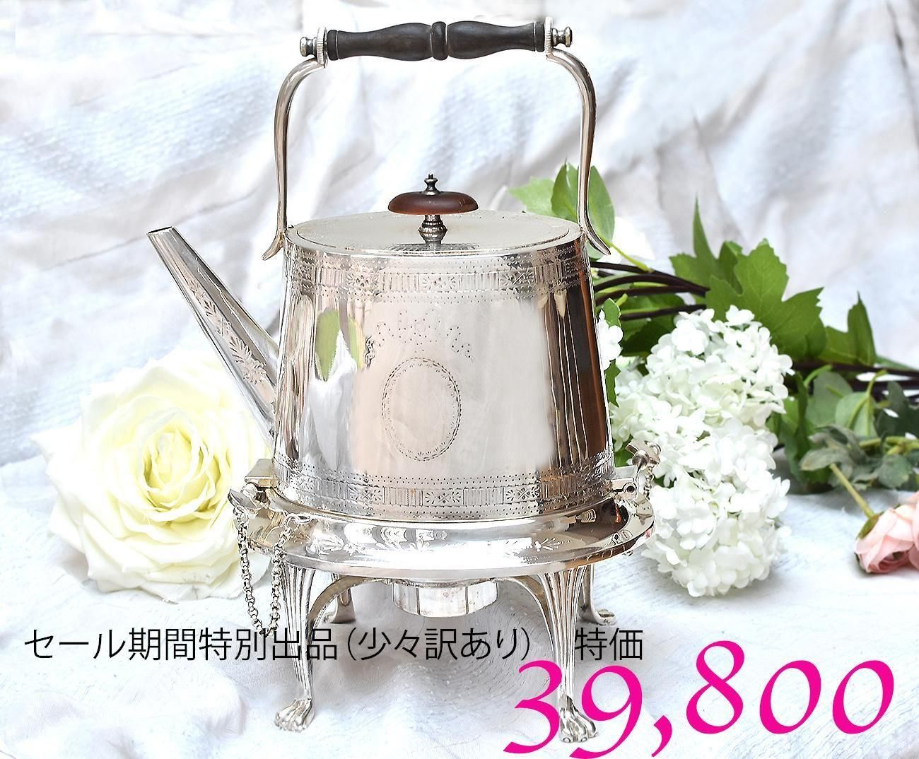 英国アンティーク銀器【シルバープレート】ティーケトル&スタンド 特価
